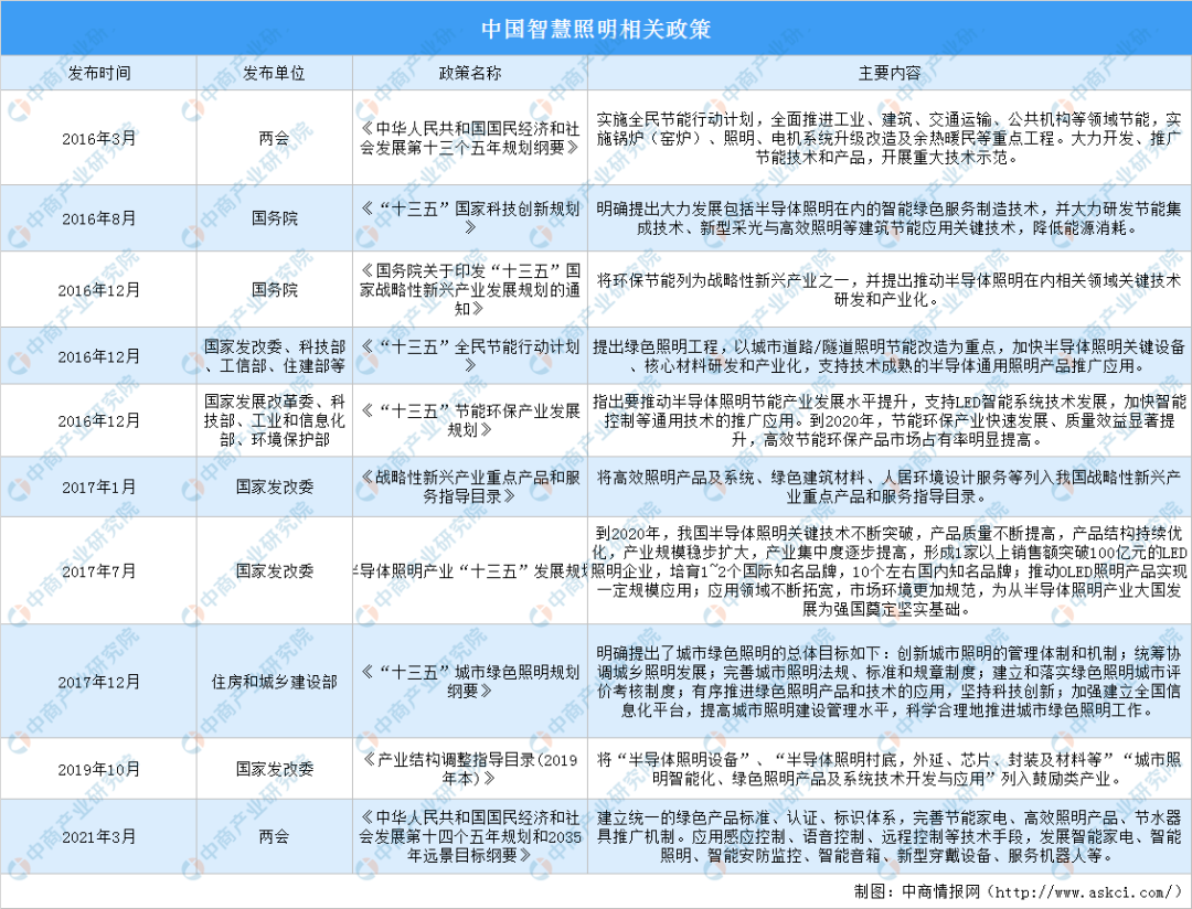 近年來,在萬物互聯(lián)的時代背景下,云計算、大數(shù)據(jù)、人工智能、物聯(lián)網(wǎng)等前沿技術(shù)給照明行業(yè)發(fā)展帶來前所未有的影響,智能照明進入了飛速發(fā)展時期。中國重視智能照明產(chǎn)業(yè)發(fā)展,中國十四五規(guī)劃綱要提出,完善高效照明產(chǎn)品推廣機制,發(fā)展智能照明產(chǎn)業(yè)。